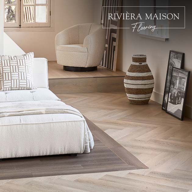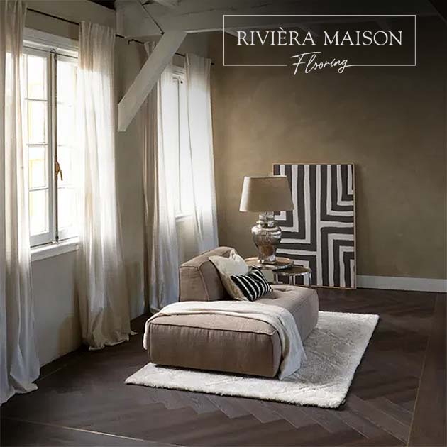 Das echte Holz wird bis zur Perfektion nachempfunden. Das ausgewählte Eichenholz mit den schönen Adern und spürbarer Struktur, veredelt mit einem speziellen ultra-matten Lack, macht den Rivièra Maison Flooring besonders.